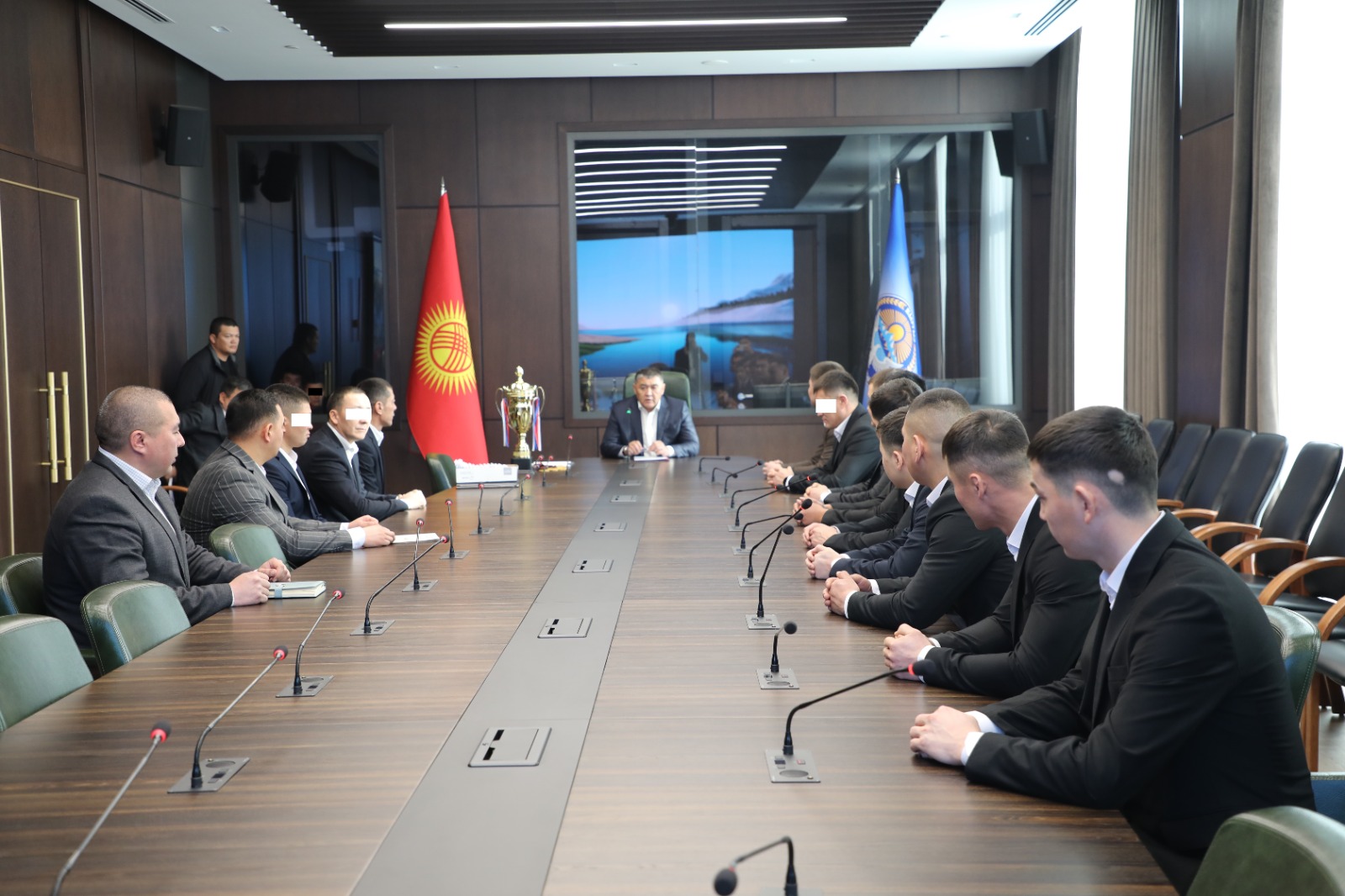 Председатель ГКНБ Камчыбек Ташиев принял и поздравил сотрудников спецслужбы, занявших первое место на международном турнире по футзалу «Наристе-2026».