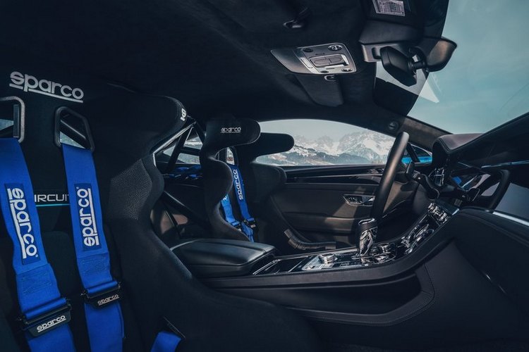 Единственные доработки, которые внесли в Continental GT, — полукаркас безопасности в задней части салона, два спортивных сиденья Sparco с многоточечными ремнями и встроенную систему пожаротушения.