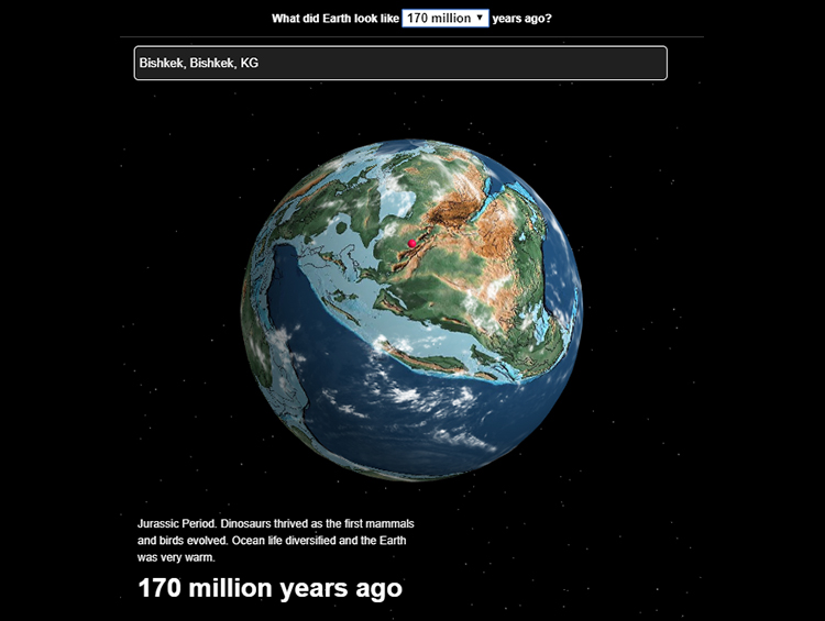 Чтобы посмотреть, где находился ваш город миллионы лет назад, нужно лишь ввести его название. «Мое программное обеспечение «геокодирует» местоположение пользователя, а затем использует модели Скотезе для поиска их местоположения в прошлом», — рассказывает Вебстер.