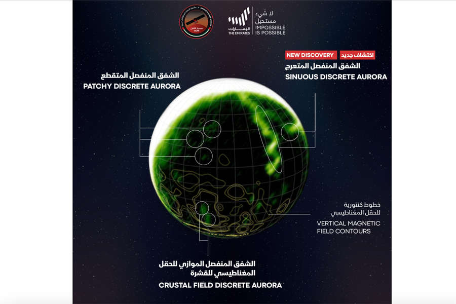Миссия Emirates Mars — первая межпланетная экспедиция, предпринятая арабской страной, она посвящена, в частности, исследованиям взаимодействий между атмосферой Марса, локальными магнитными полями планеты и солнечными ветрами. Наблюдения включают в себя невиданное ранее явление, названное арабской командой «извилистым дискретным полярным сиянием».