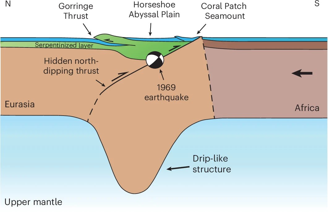 Отмечается, что традиционно Атлантика считалась спокойной зоной, но в Португалии, находящейся в удалении от известных разломов, неоднократно происходили сильные землетрясения. По словам геологов, при землетрясении 1969 года были все признаки, характерные для зоны субдукции — границы сходящихся литосферных плит. В ходе недавнего анализа команда геолога из Лиссабона Жуана Дуарте сопоставила сейсмические данные и компьютерные модели абиссальной равнины, расположенной к юго-западу от Португалии, и нашла доказательства расслоения мантии.