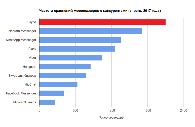 Недавно на рынке появился еще один продукт Microsoft для общения — Teams. «В этом году его чаще всего сравнивают со Slack, причем в три раз чаще, чем с тем же Telegram. Но пока прогнозы по его продвижению делать рано», — отмечается в исследовании.