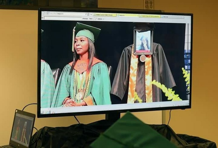 Устройство, похожее на сегвей, одетый в мантию и академическую шапочку, оснастили планшетом iPad. Через него девушка по видеосвязи могла общаться с руководством школы и одноклассниками и управлять конструкцией. Как бы забавно это ни выглядело, многих растрогало такое «появление» Синтии в зале. Завуч и вовсе разрыдалась.
