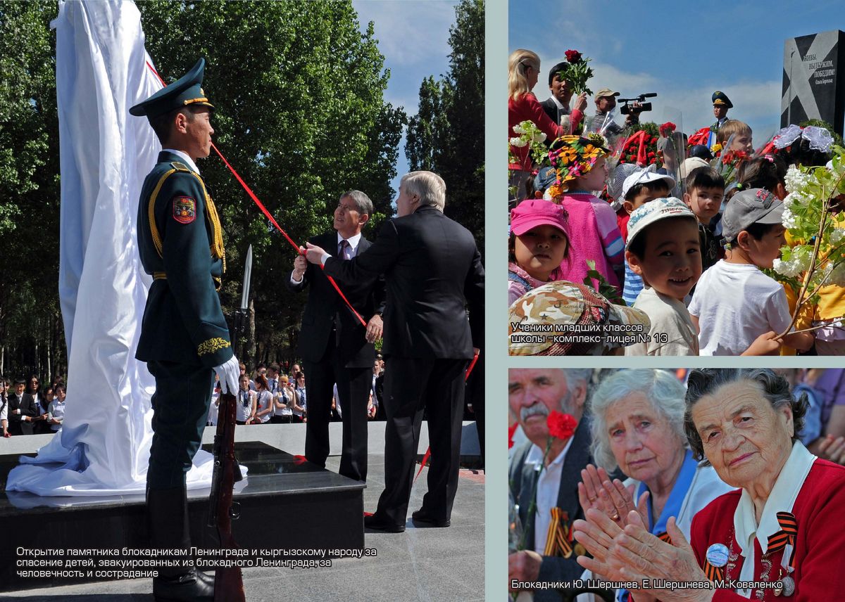 «Однажды решила построить в Бишкеке мемориал блокадникам. Ведь у детей, эвакуированных из осажденного Ленинграда в Кыргызстан и оставшихся здесь навсегда, не было возможности посетить могилу родителей. На реализацию идеи нам с сыном Маратом потребовалось 4,5 года. Мне пришлось обойти все инстанции, включая президента.