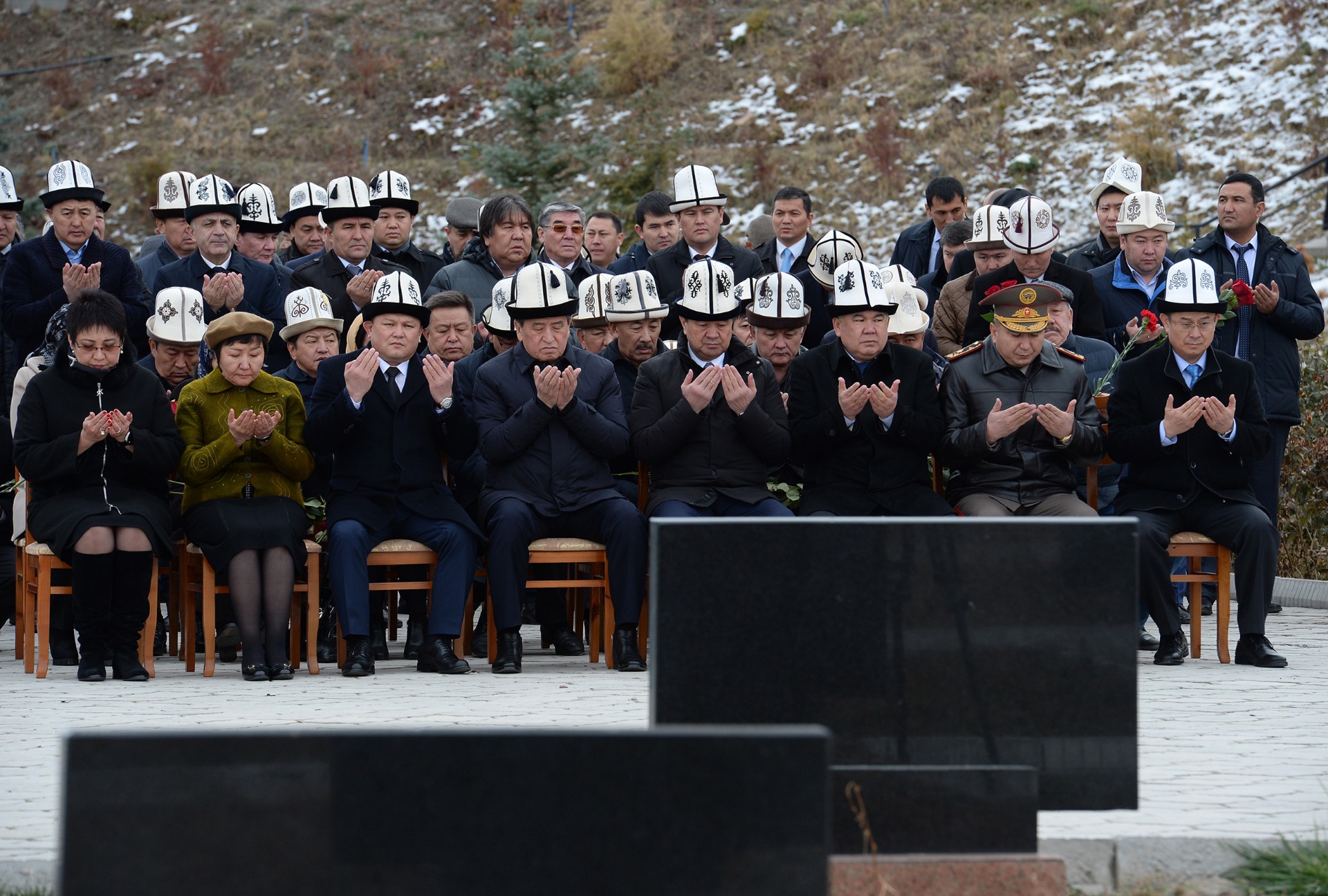 «Ровно 80 лет назад, 5-7-8 ноября 1938 года здесь, в Чон-Таше, были расстреляны 138 выдающихся граждан Кыргызстана, среди которых были основатели нашего государства Жусуп Абдрахманов, Мурат Салихов, Осмонкул Алиев, Баялы Исакеев, Касым Тыныстанов, Эркинбек Эсенаманов, Торекул Айтматов, Иманалы Айдарбеков и другие. В Кыргызстане число высланных на ссылку в 1932 году достигло тысячи человек, в 1933-м были осуждены как «классовые враги» и кулаки более 5 тысяч человек. В общей сложности, согласно последним исследованиям, в 1930-е годы жертвами репрессий на территории Кыргызстана стали более 20 тысяч людей», — отметил Сооронбай Жээнбеков.
