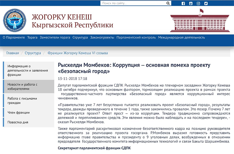 К слову отметим, что информация со слов Рыскелди Момбекова опубликована также на сайте Жогорку Кенеша и подготовлена секретариатом фракции СДПК.