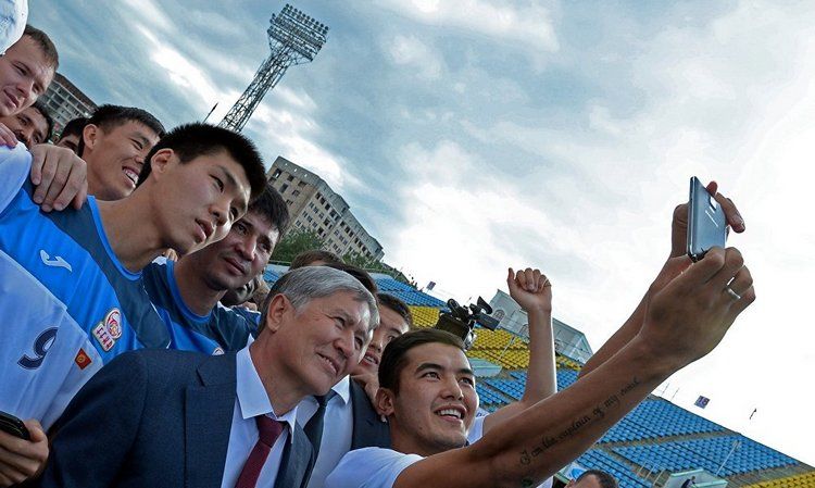 Алмазбек Атамбаев не отказывался делать селфи и во время президентства. Вот он на тренировке сборной Кыргызстана по футболу.