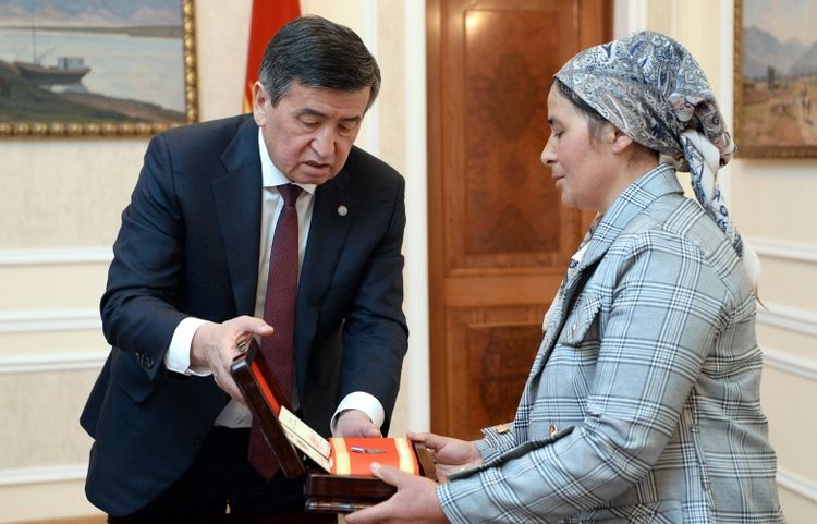 Президент Сооронбай Жээнбеков принял супругу погибшего в ходе конфликта на кыргызско-таджикской границе в сентябре 2019 года военнослужащего Государственной пограничной службы КР Равшана Муминова. Об этом сообщила пресс-служба главы государства.