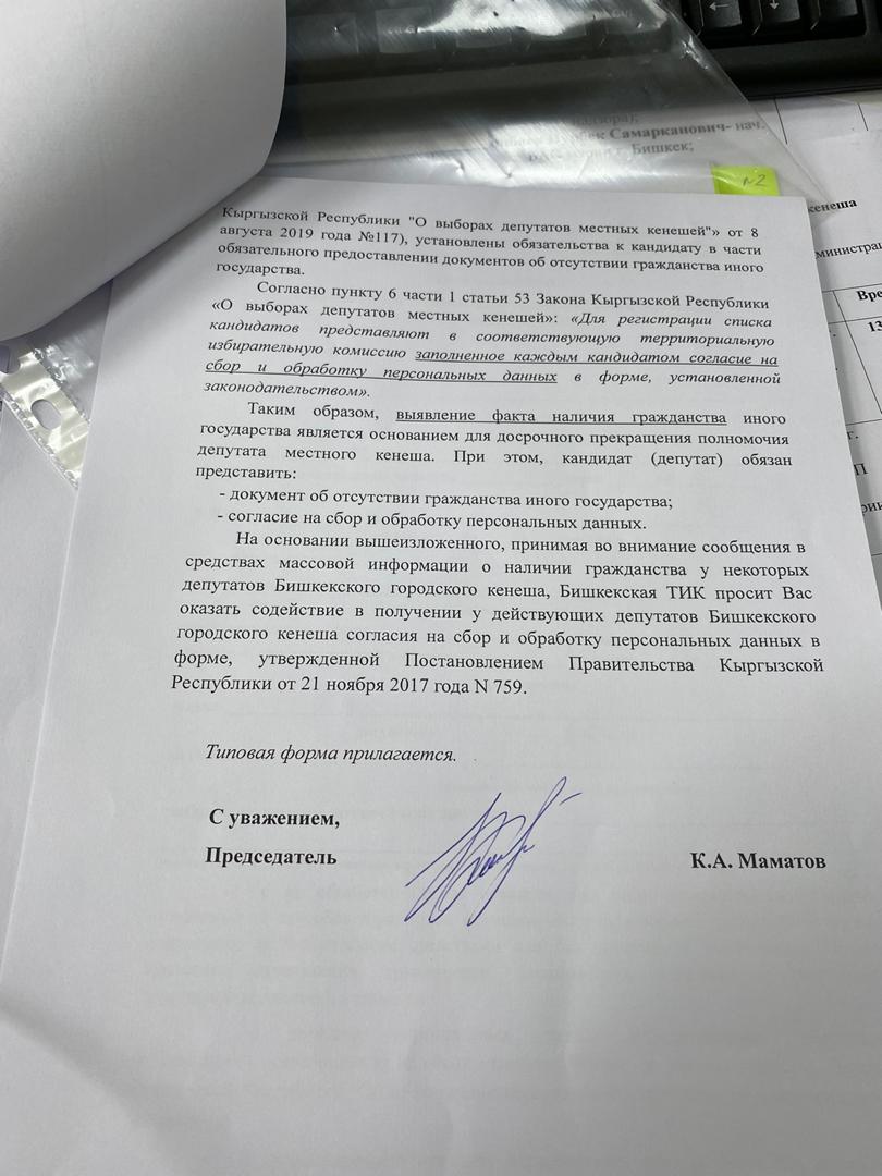 «Я обратился с письмами в адрес спикера и лидеров фракций, чтобы они взяли согласие у всех депутатов на обработку их персональных данных», — отметил Кайрат Маматов.