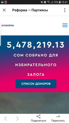 Партия «Реформа» собрала 5 миллионов сомов залога. Информация появилась на сайте политорганизации.
