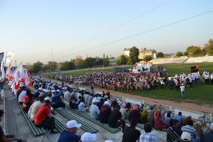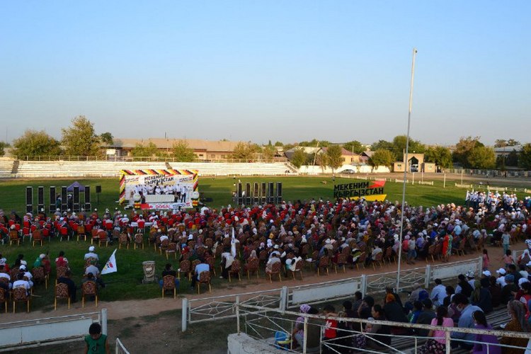 Продолжаются агитационные поездки кандидатов от партии «Мекеним Кыргызстан» по стране. На этот раз партийцев встречали жители сел Сарай, Савай и города Кара-Суу. Тысячи человек пришли выразить свою поддержку кандидатам от партии «Мекеним Кыргызстан» № 4.