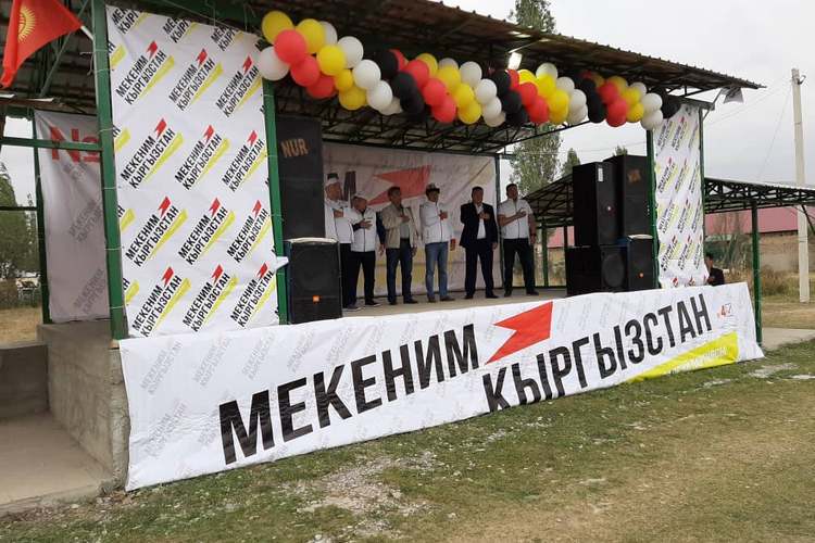 Новая точка на маршруте агитационного каравана партии «Мекеним Кыргызстан» — город Кербен. Сотни человек пришли на встречу с кандидатами. Лидер партии Мирлан Бакиров презентовал программу.