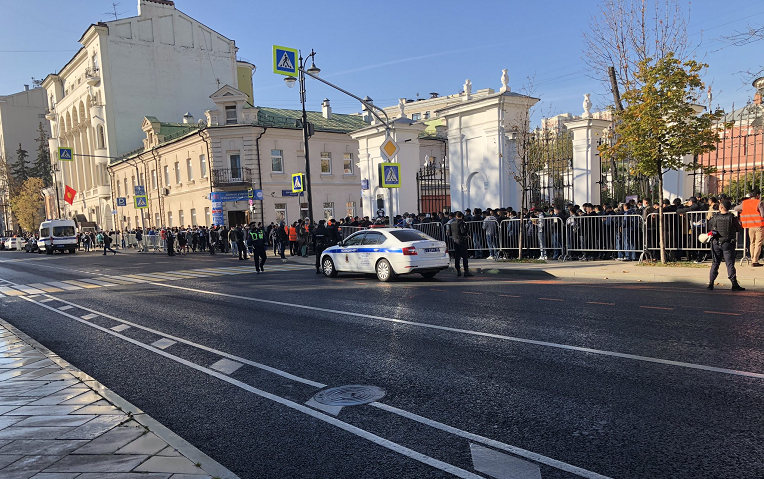 Сотни граждан Кыргызстана ждут своей очереди проголосовать у здания посольства в Москве.