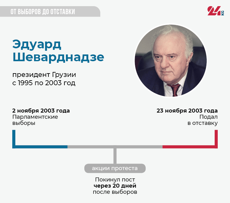 2 ноября 2003 года в Грузии состоялись парламентские выборы. По данным ЦИК, в них победила партия Эдуарда Шеварднадзе. Оппозиция заявила о нарушениях и призвала граждан не признавать итоги голосования. В стране начались массовые протесты. Митинг в Тбилиси собрал около 50 тысяч человек. Оппозиционеры под руководством Михаила Саакашвили захватили здание парламента. В стране было введено чрезвычайное положение. На следующий день Шеварднадзе при посредничестве России провел переговоры с оппозицией и объявил об отставке, не желая «проливать кровь».
