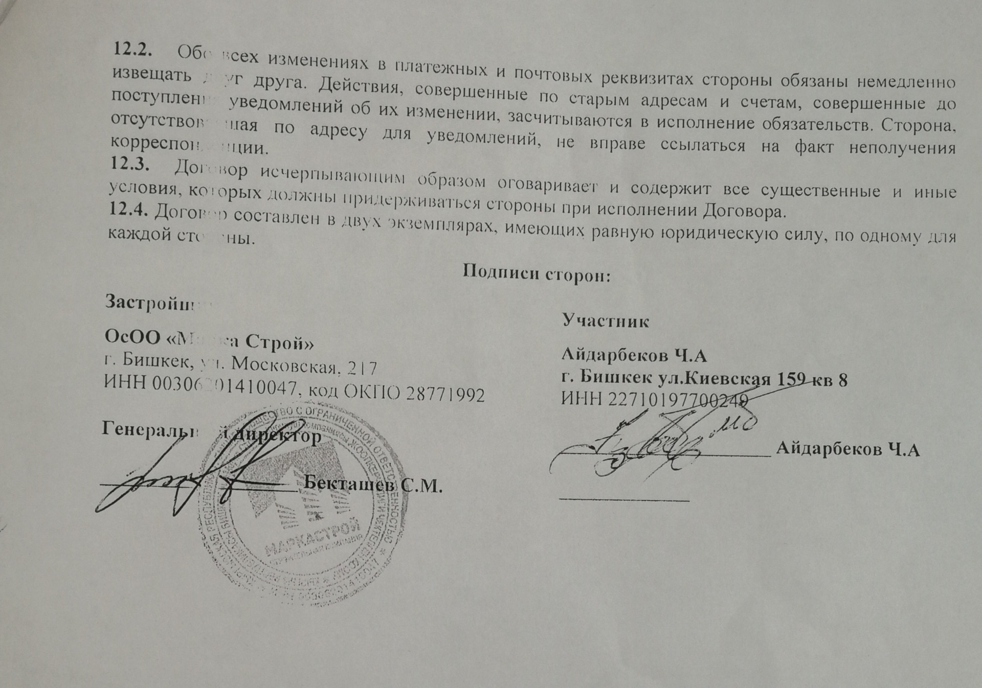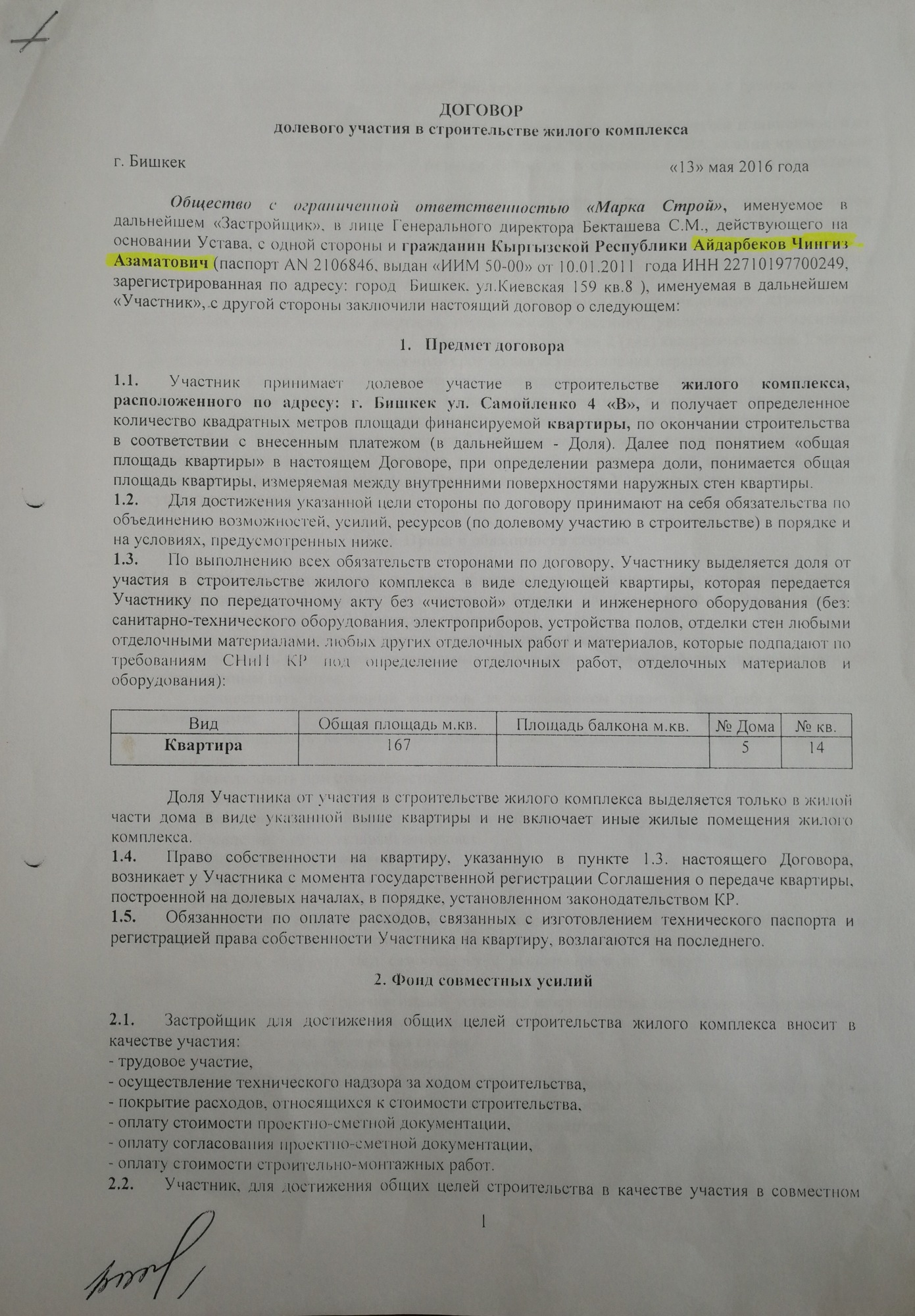 Уточняется, что Чингиз Айдарбеков 13 мая 2016 года подписал договор долевого участия в строительстве жилого комплекса с ОсОО «Марка строй». Он купил квартиру в элитном доме в районе ВДНХ общей площадью 167 квадратных метров. 18 июля 2018-го Чингиз Айдарбеков подписал договор долевого участия на приобретение нежилого коммерческого помещения на первом этаже указанного жилого дома общей площадью 30 квадратных метров по адресу: улица Самойленко, 4в.