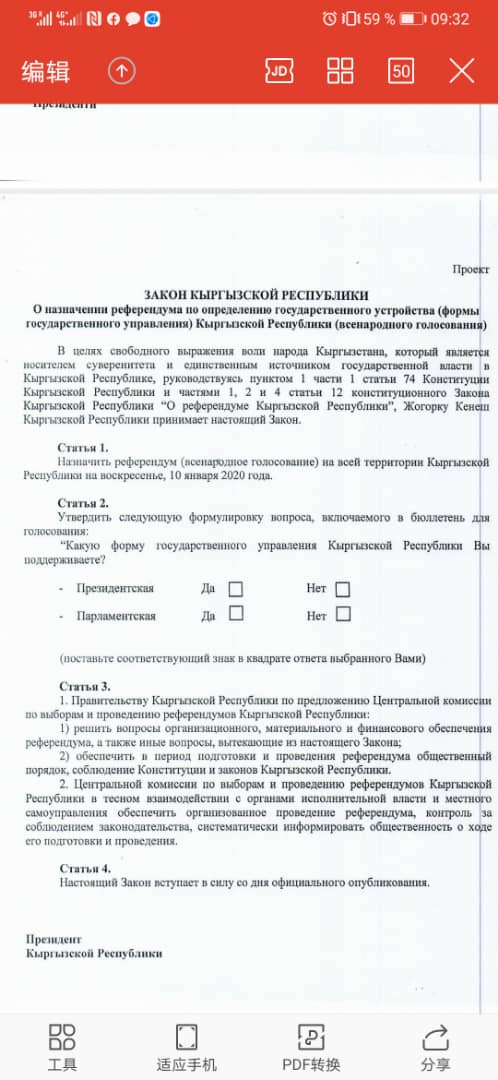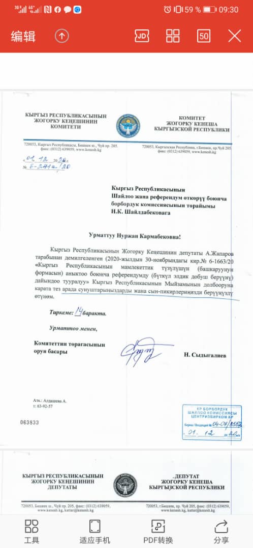 В ЦИК поступила инициатива депутата Жогорку Кенеша Акылбека Жапарова о проведении референдума по определению государственного устройства. Об этом 24.kg стало известно из собственных источников.