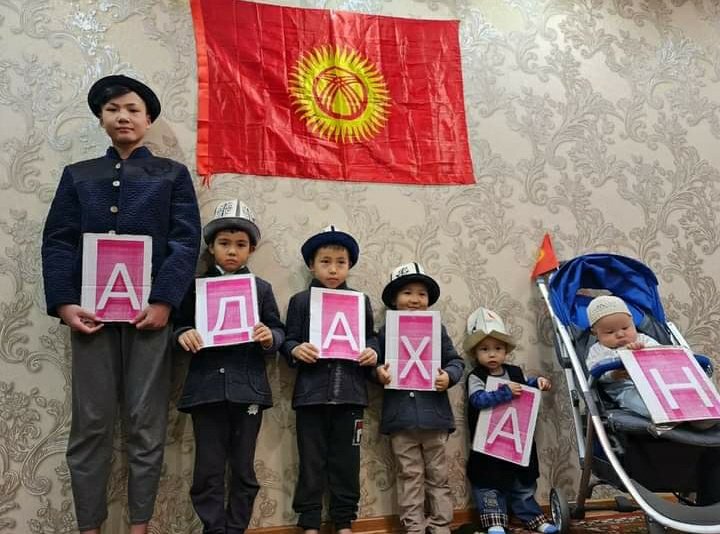 В социальных сетях появилась фотография, на которой изображены дети. Они держат в руках буквы, из которых сложено имя кандидата в президенты Адахана Мадумарова.