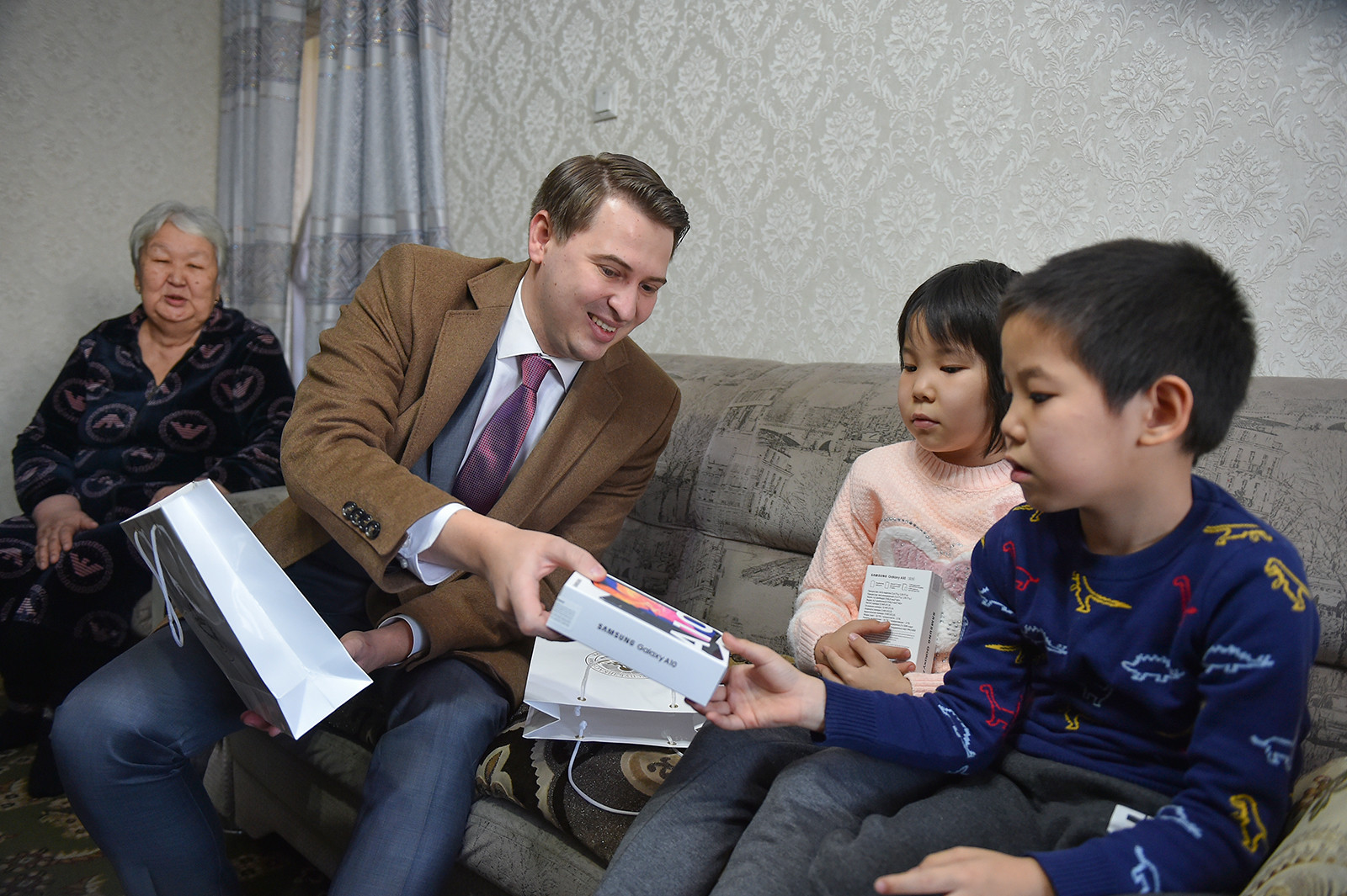 И. о. главы кабмина поздравил детей с наступающим Новым годом и вручил им подарки. Брат и сестра остались без матери сразу после родов, спустя полгода в автомобильной аварии погиб их отец. Сейчас опекуном детей является бабушка по маминой линии Кымбат Сарбашева.
