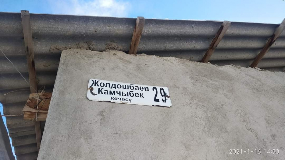 В Нарынской области в честь депутата Жогорку Кенеша Камчыбека Жолдошбаева назвали улицу. Фото таблички опубликовали пользователи социальных сетей.