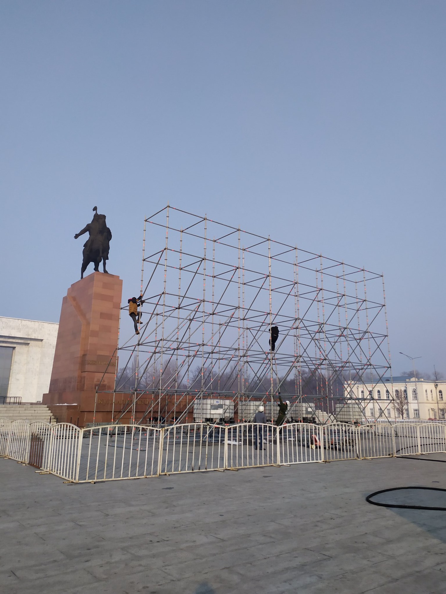 Фото из Twitter. На площади Ала-Тоо устанавливают экран для трансляции церемонии инаугурации