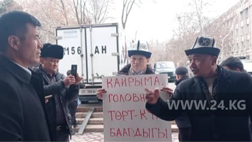 Митингующие у Дома правительства жители Баткенской области требуют от новоизбранного премьер-министра Улукбека Марипова объяснений по поводу его заявлений по Торткульскому водохранилищу.