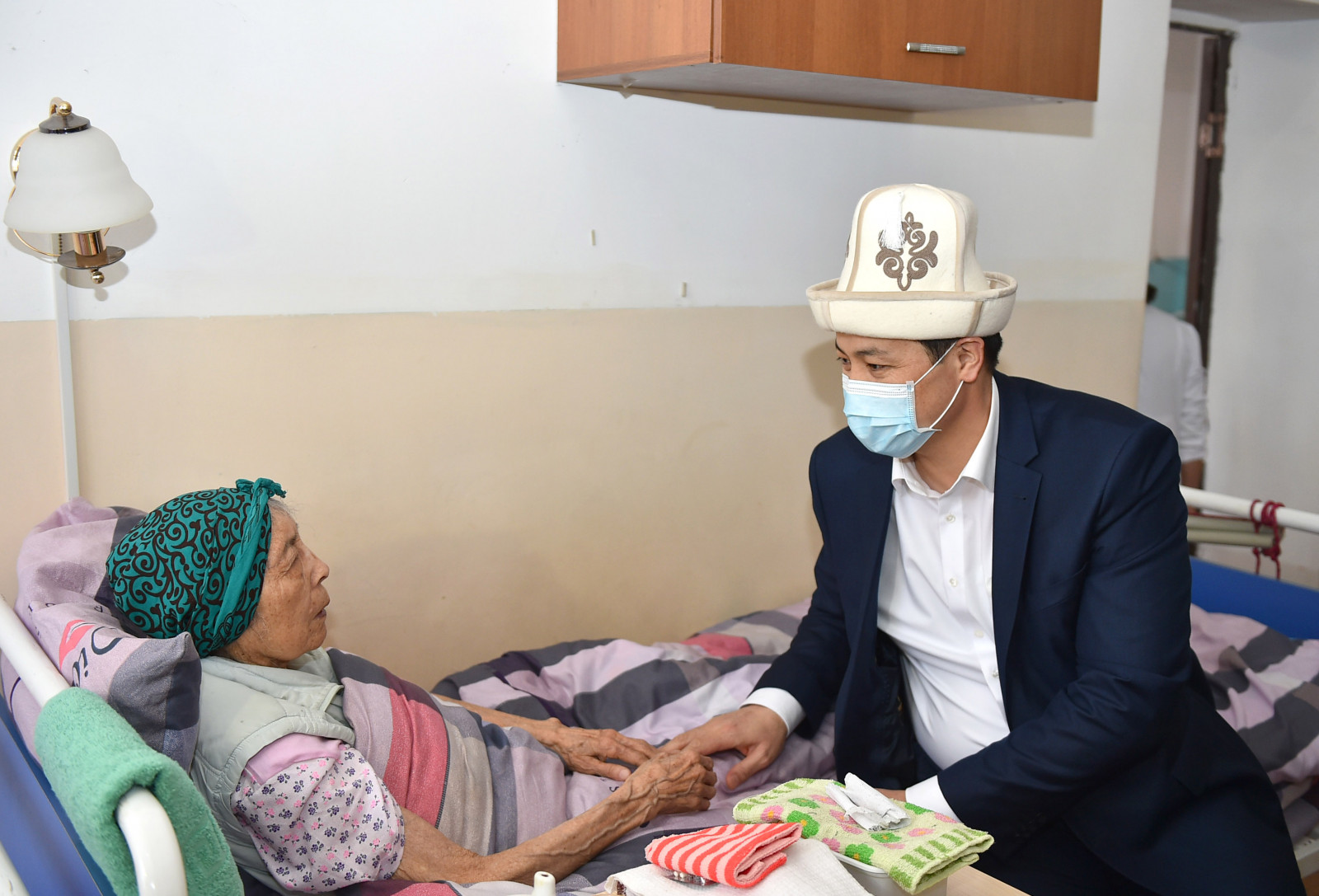 Премьер-министр Улукбек Марипов в Международный женский день 8 Марта посетил Бишкекское социальное стационарное учреждение для пожилых и лиц с ограниченными возможностями здоровья.