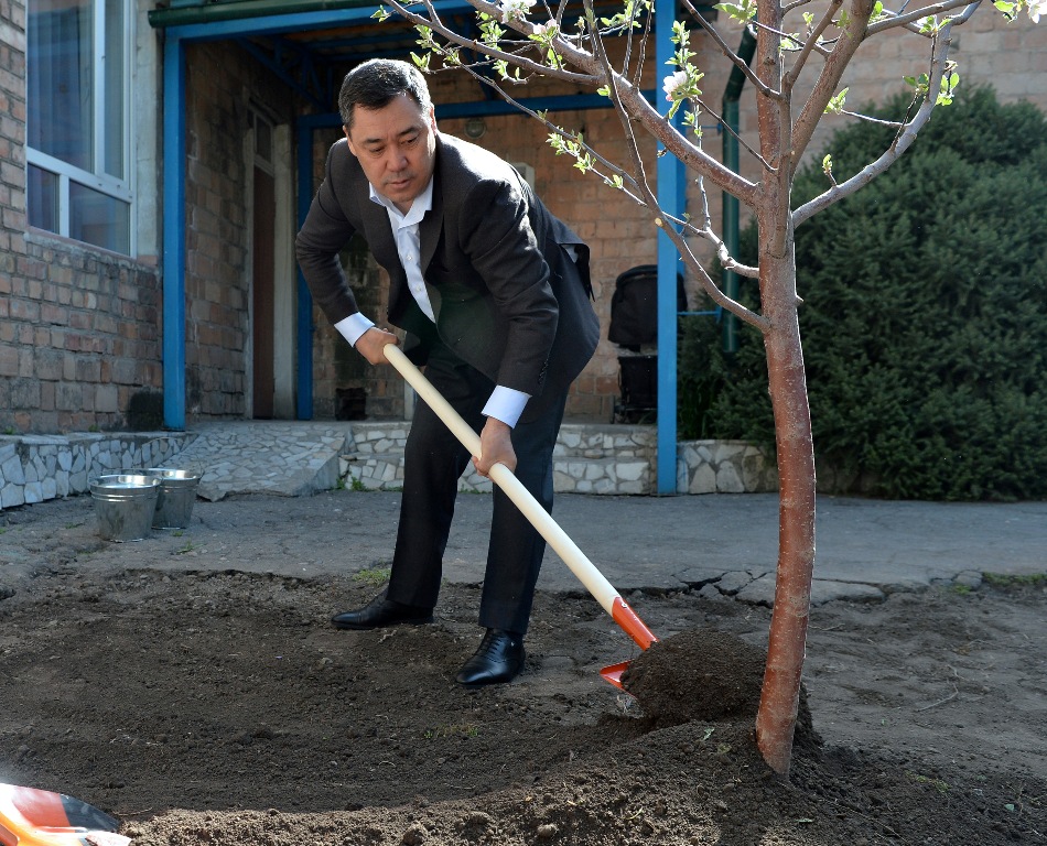 Президент Садыр Жапаров в рамках акции «Сад памяти» посадил деревья на территории дома ребенка в Бишкеке. Об этом сообщает пресс-служба главы государства.