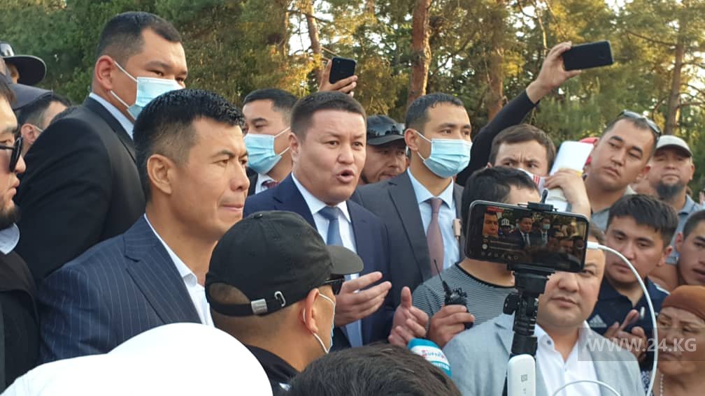 Фото 24-kg.com. К митингующим вышел спикер ЖК Талант Мамытов