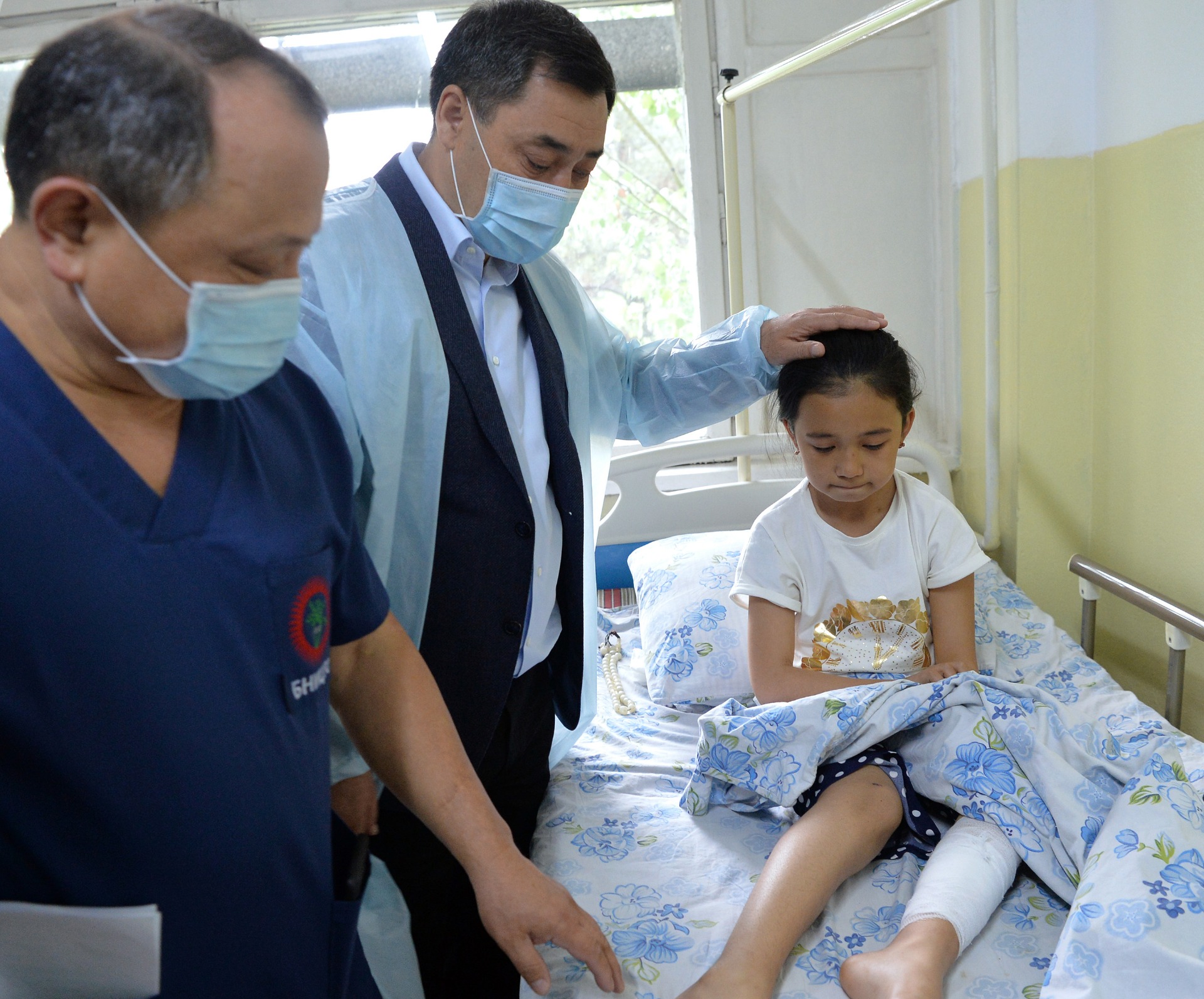 Президент Садыр Жапаров навестил пострадавших из Баткенской области, получающих лечение в Бишкекском научно-исследовательском центре травматологии и ортопедии. Об этом сообщили в пресс-службе главы государства.