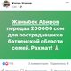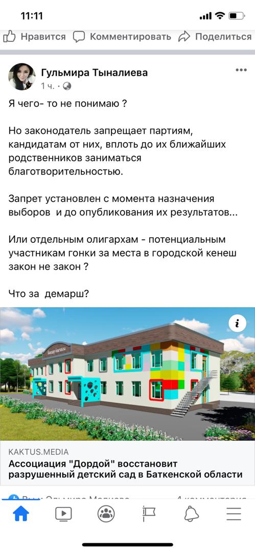 А лидер списка партии Жаныбек Абиров сказал, что направит 200 тысяч сомов в помощь семьям пострадавших. Об этих фактах пишут пользователи соцсетей. Ни Бишкеская ТИК, ни ЦИК не реагируют на грубое нарушение избирательного законодательства.