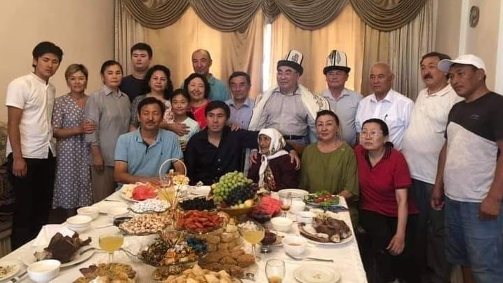 Напомним, его супруга — Майрам Акаева родом из Таласской области. Здесь живет ее мать, которой исполнился 101 год. Аскар Акаев прибыл навестить свою тещу. Она проживает в городе вместе со своими детьми. На застолье пригласили бывшего премьера и депутата Кубанычбека Жумалиева. Он ближайший соратник первого свергнутого главы государства.