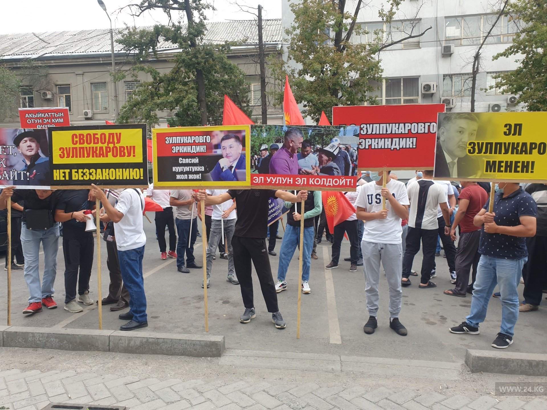 В Бишкеке около здания городского суда митингуют сторонники депутата парламента Торобая Зулпукарова.
