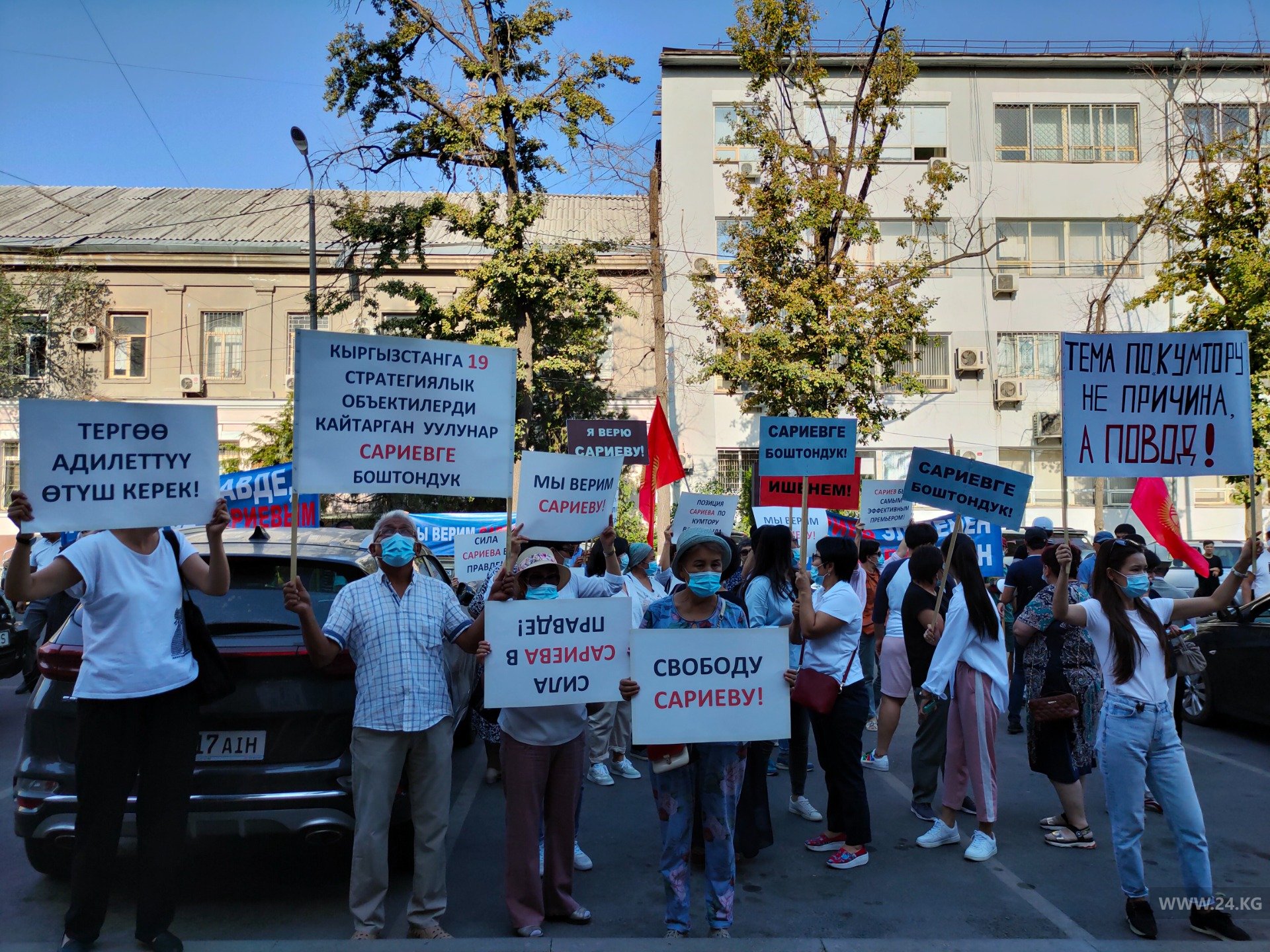 В Бишкеке возле здания горсуда сегодня вновь митингуют сторонники экс-премьер-министра Темира Сариева.