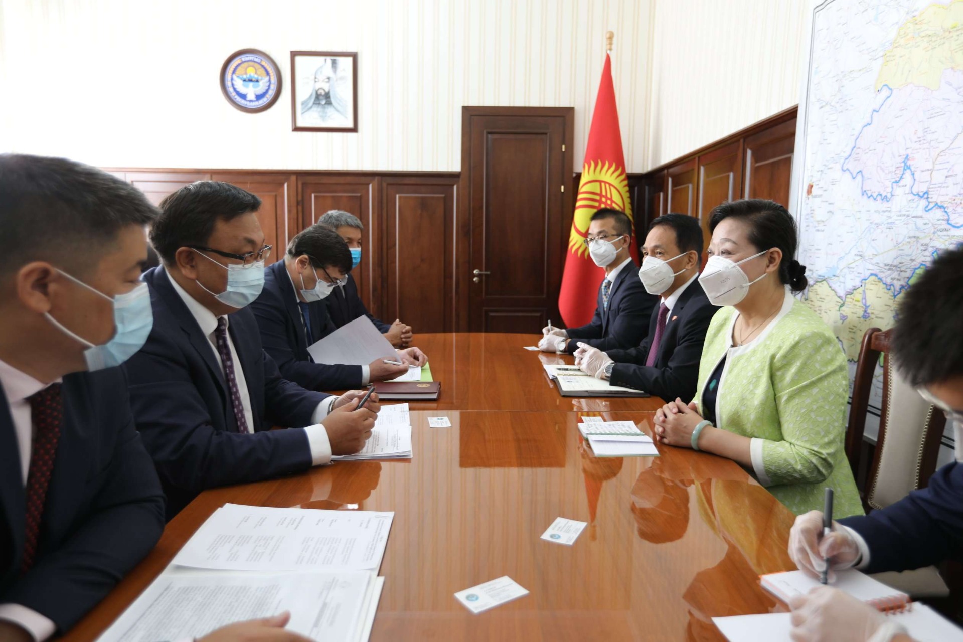Чрезвычайный и Полномочный Посол Китайской Народной Республики в Кыргызской Республике Ду Дэвэнь встретилась с вновь назначенным первым заместителем председателя кабинета министров КР Азизом Аалиевым. Стороны обменялись мнениями по углублению торгово-экономического сотрудничества между двумя странами, сообщили 24-kg.com в дипломатической миссии.