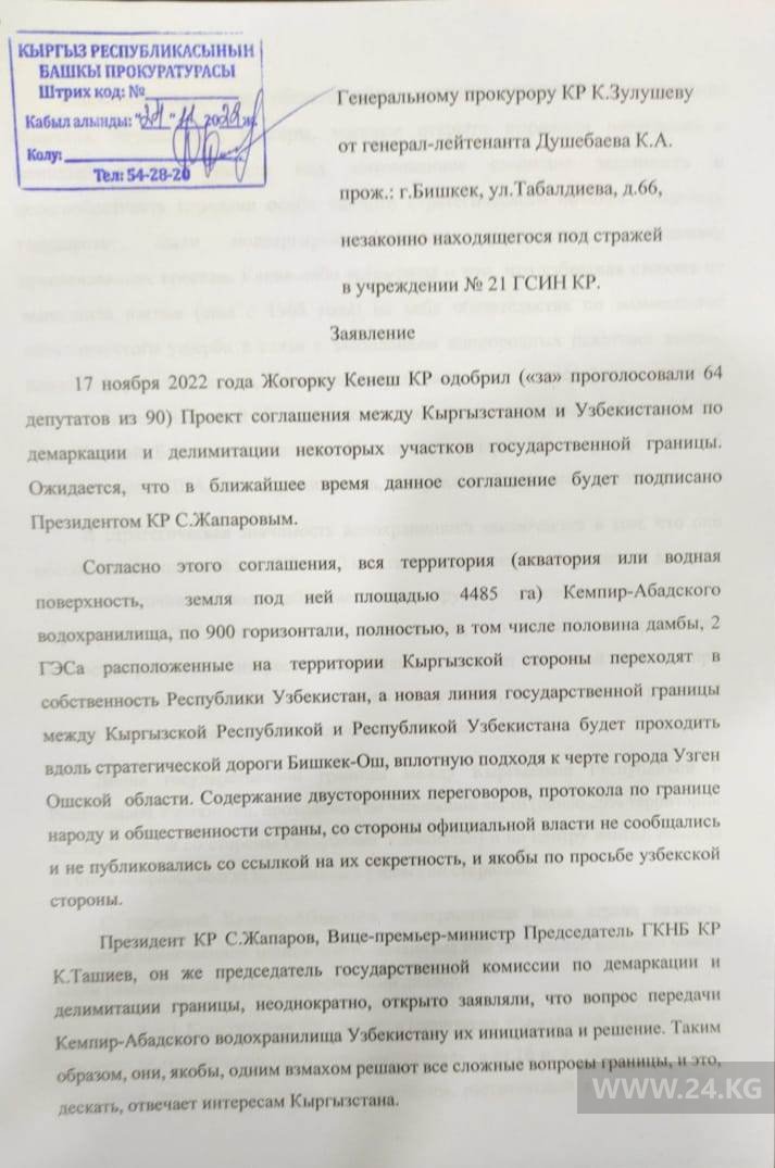 Из текста заявления Кенешбека Дуйшебаева