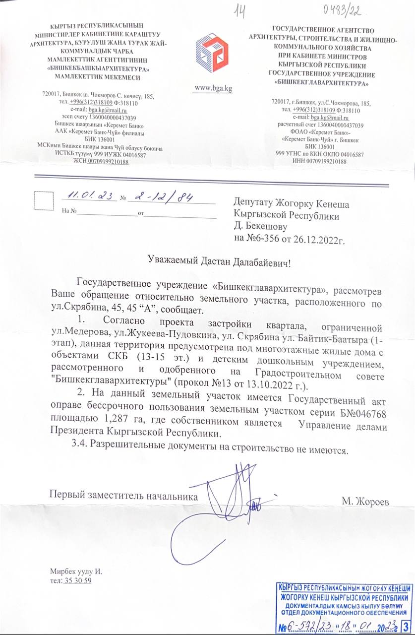 Депутат парламента Дастан Бекешев в своем Telegram-канале рассказал, кому достались земельные участки Максима Бакиева, находящиеся в Бишкеке по адресу: улица Скрябина, 45 и 45а.