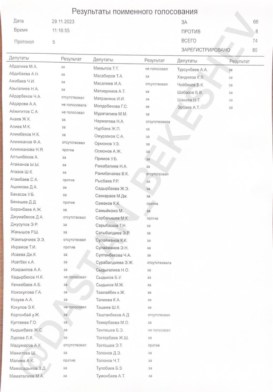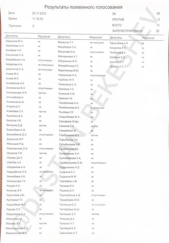 Присутствуют 80 депутатов, за высказались 66 депутатов, против — 8.