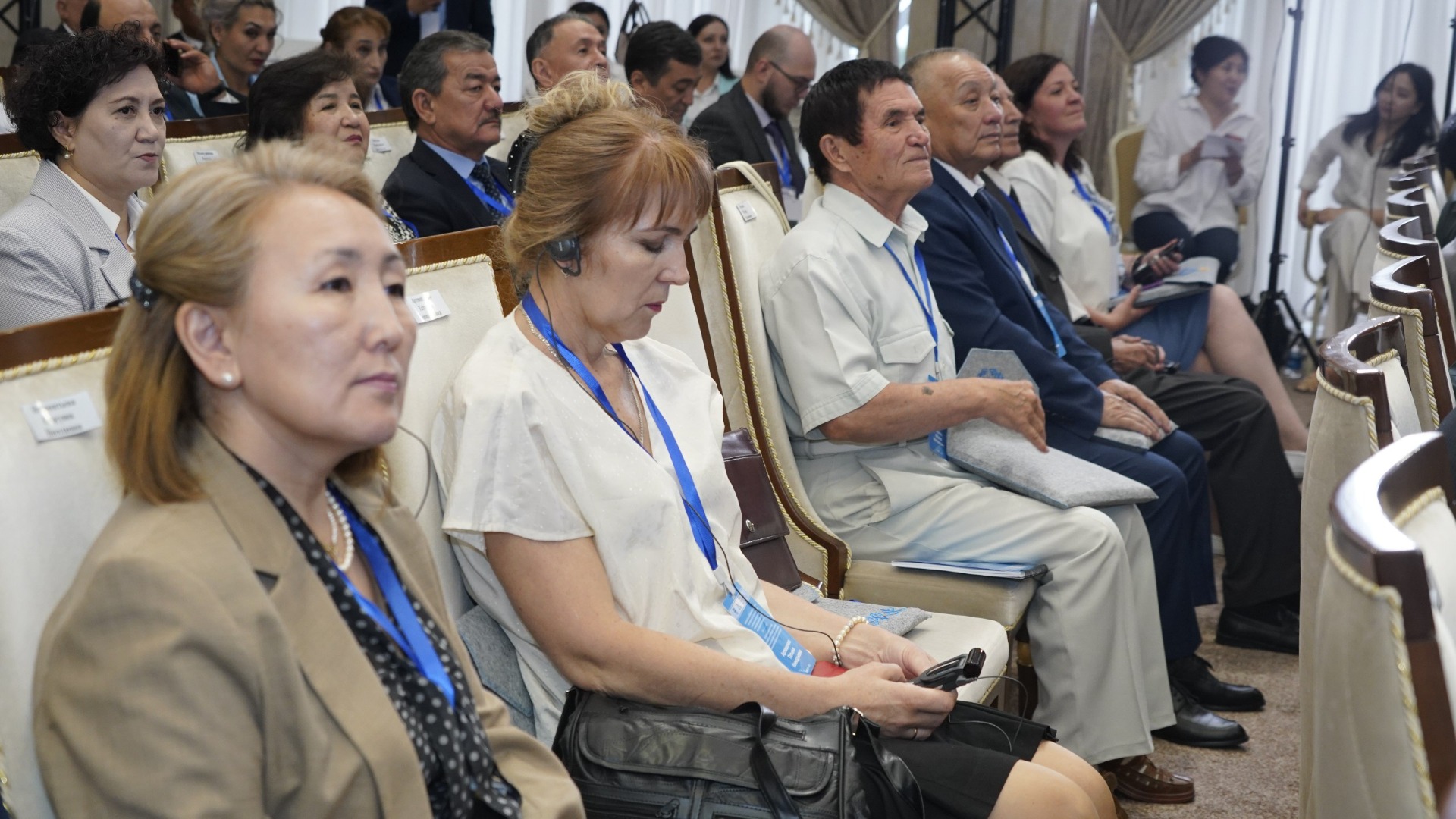 Садыр Жапаров направил обращение к делегатам и поздравил их с юбилеем. Обращение главы государства зачитал госсекретарь Суйунбек Касмамбетов.
