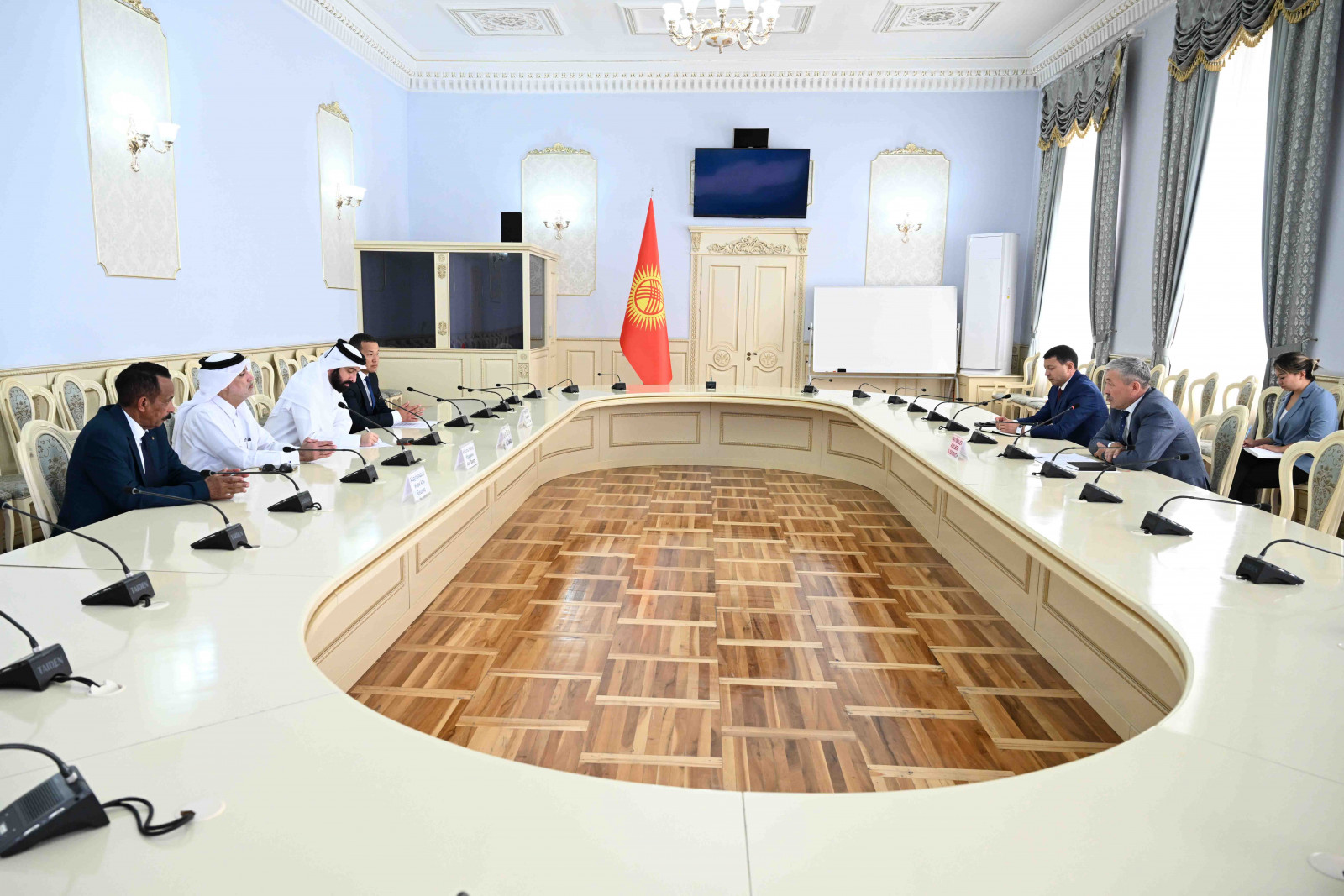 Первый заместитель председателя кабинета министров Адылбек Касымалиев встретился с директором по глобальным программам Катарского благотворительного фонда Qatar Charity Навафом Абдуллой Аль-Хаммади.