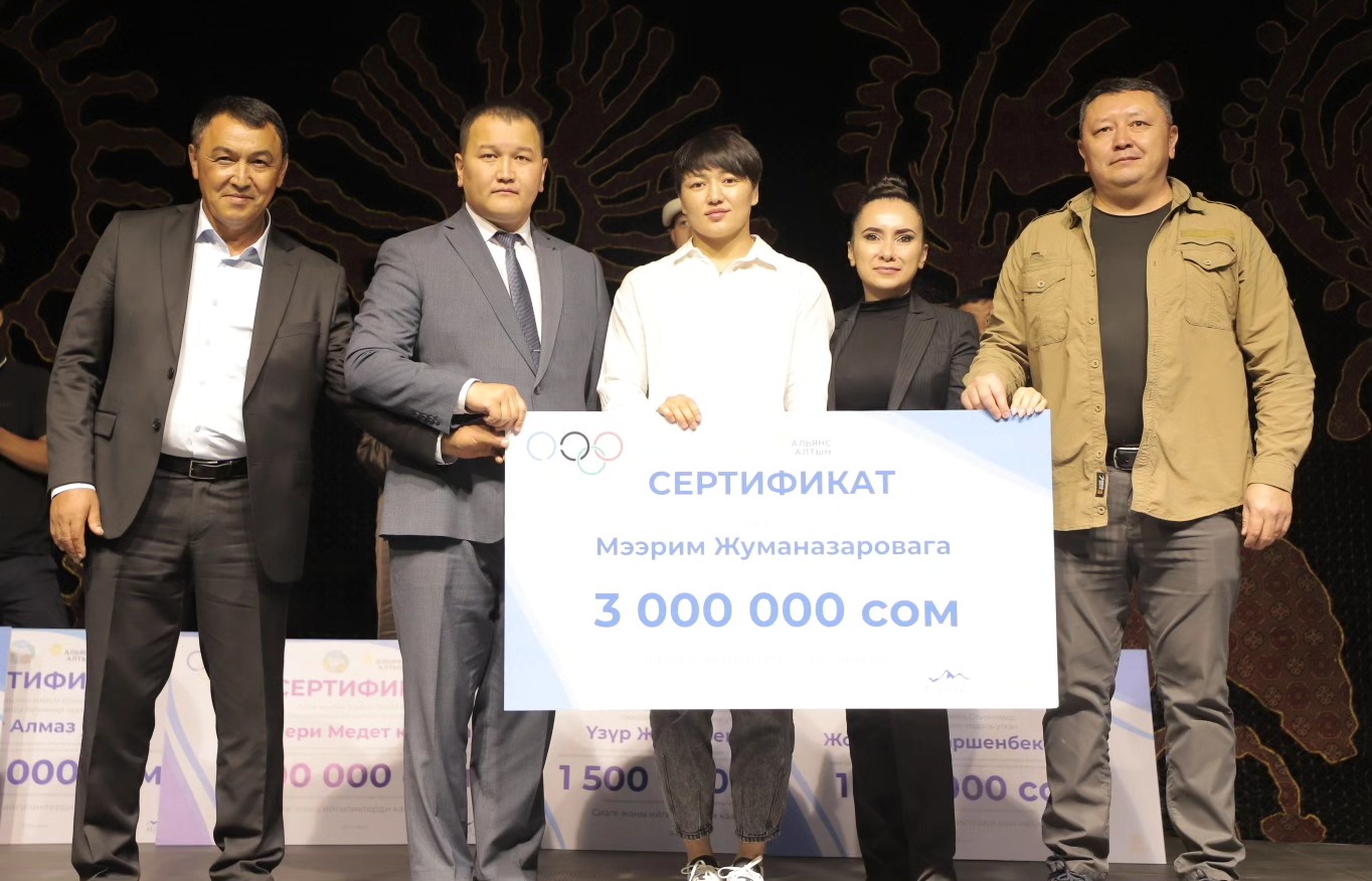 Глава региона Эрмат Джумаев поздравил спортсменов и вручил серебряному призеру Олимпийских игр Мээрим Жуманазаровой 3 миллиона сомов. Другой серебряный медалист Мунарбек Сейитбек уулу получил 1 миллион.