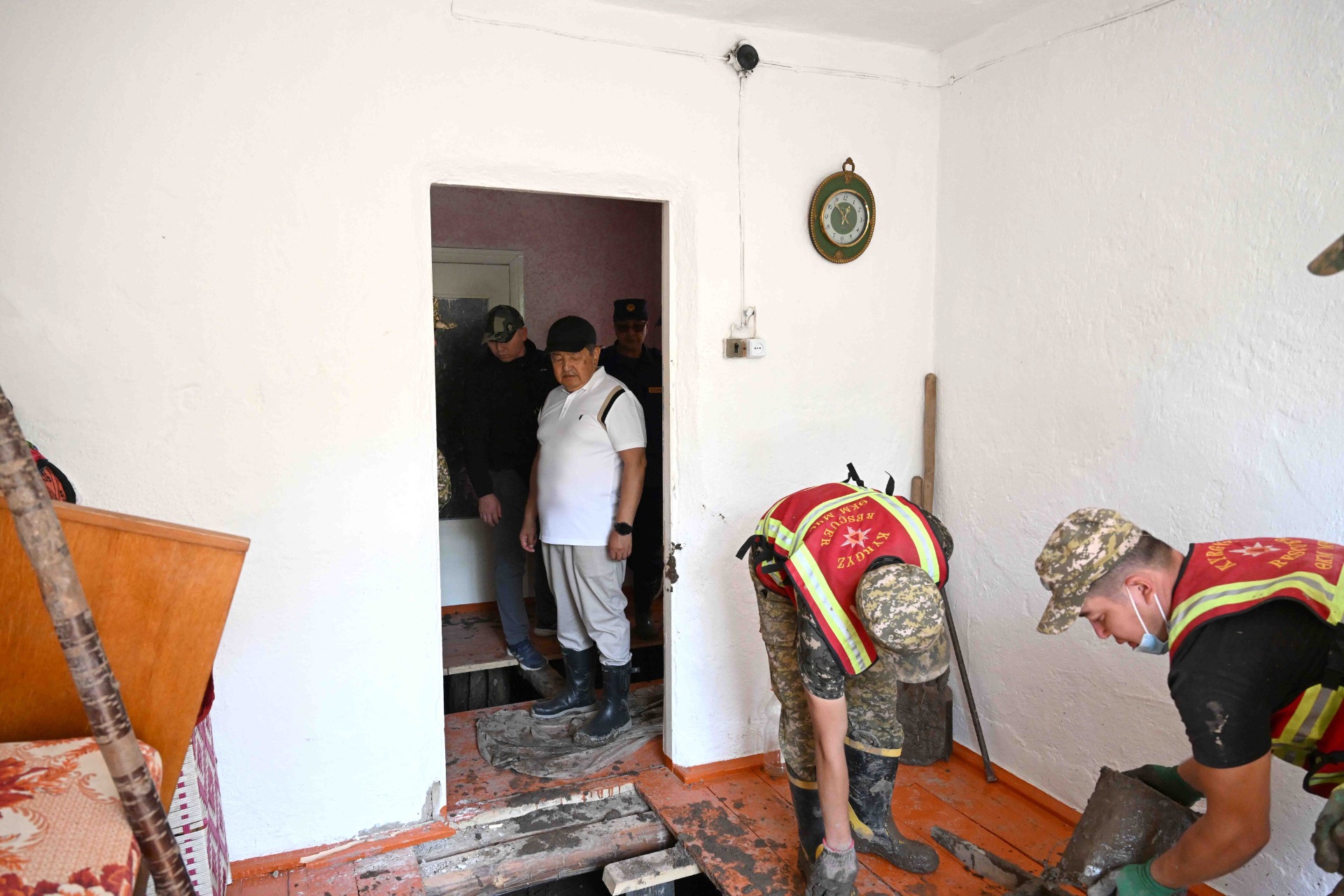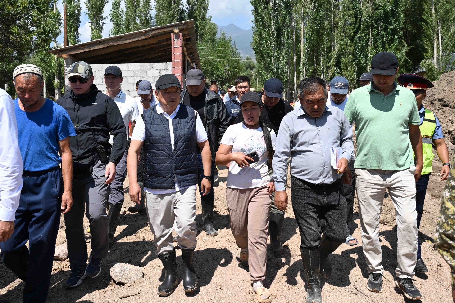 Жапаров осмотрел село Темир в айыльном аймаке Садыр-Аке, где ознакомился с масштабами ущерба и провел обсуждения с представителями местных властей и Министерства чрезвычайных ситуаций о мерах по устранению последствий.