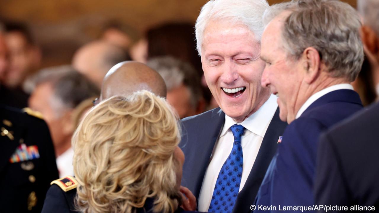 На инаугурации Дональда Трампа, помимо Джо Байдена, были сразу несколько экс-президентов США: Билл Клинтон, Джордж Буш-младший и Барак Обама. Среди гостей также можно было увидеть миллиардера и одного из спонсоров кампании Трампа Илона Маска, глав корпораций Meta Марка Цукерберга и Amazon Джеффа Безоса, а также гендиректора Apple Тима Кука.