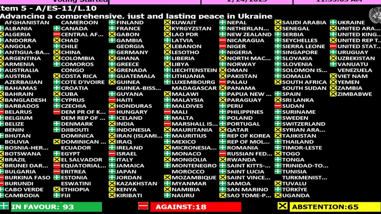 Более нейтральный вариант предложили США. После того как Генеральная Ассамблея ООН внесла поправки в резолюцию Штатов по Украине, Америка от голосования за него воздержалась. Однако позже уже при голосовании в Совбезе американский проект приняли в его первоначальном виде.