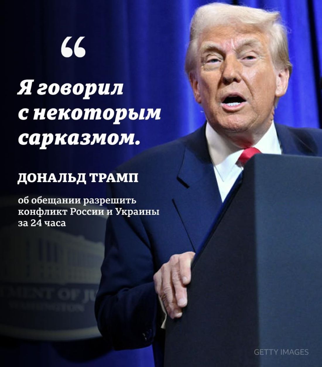 «Ну я тогда говорил это с некоторым сарказмом. Что я реально имею в виду, что хочу, чтобы это разрешилось. Я думаю, что у меня получится», — ответил Дональд Трамп.