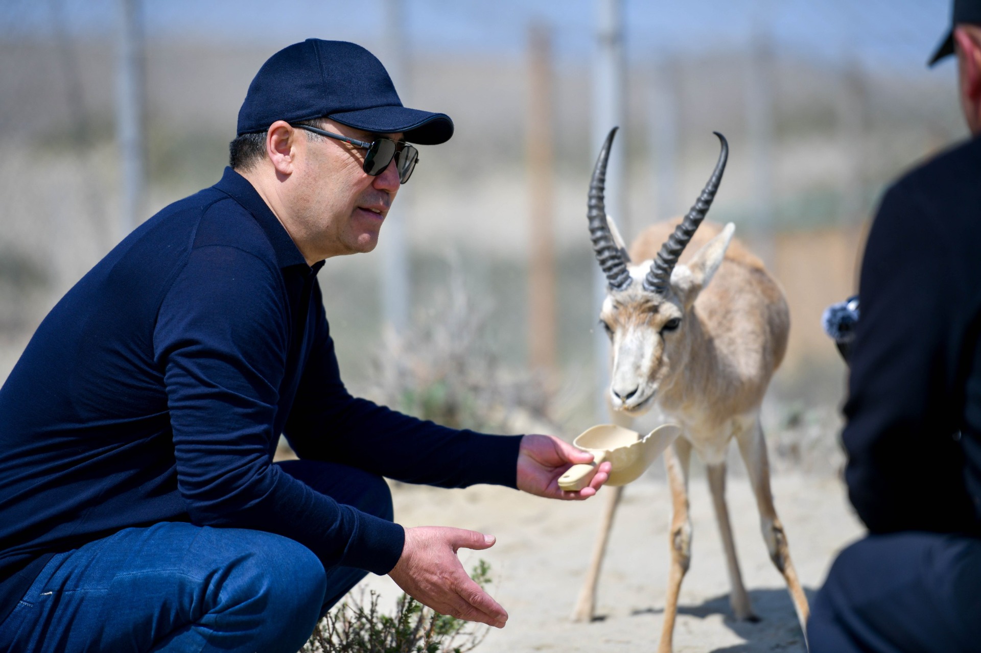 Президент Садыр Жапаров ознакомился с проектом по восстановлению популяции джейрана в Иссык-Кульской области.