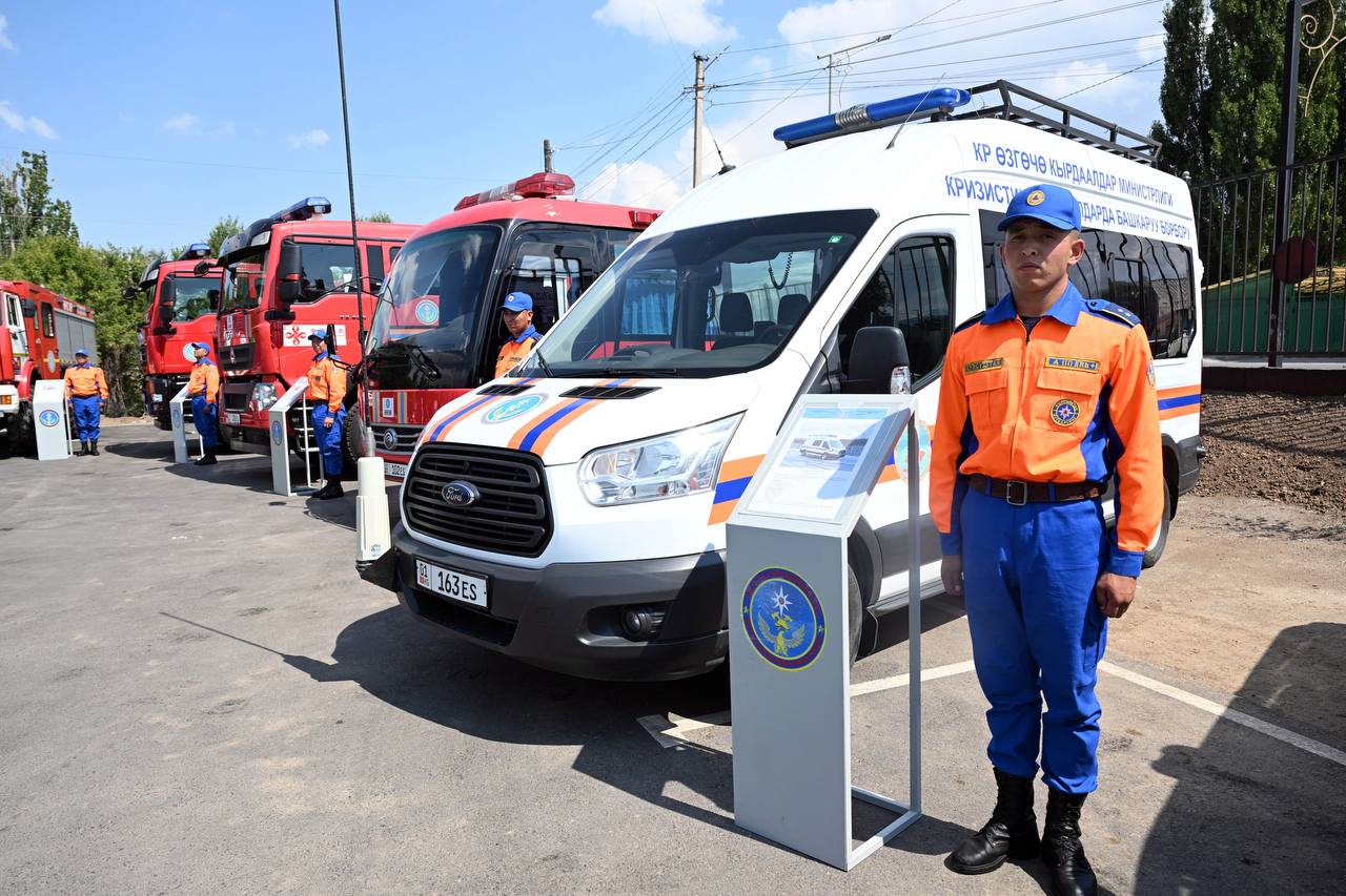 Глава государства осмотрел специальную технику МЧС и ознакомился с условиями труда сотрудников. Садыр Жапаров был проинформирован о функционировании системы раннего оповещения, а также об используемых механизмах мониторинга и реагирования при угрозе чрезвычайных ситуаций.
