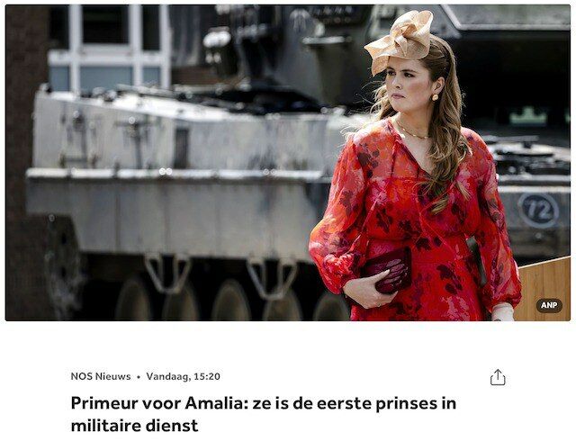21-летней Амалии присвоили младшие воинские звания — матрос третьего класса в Королевском военно-морском флоте и солдат третьего класса в Королевской армии и ВВС. Сейчас принцесса изучает теоретическую часть программы и работает помощником в Минобороны, а практическую часть пройдет позже из-за перелома руки, который она получила, упав с лошади.