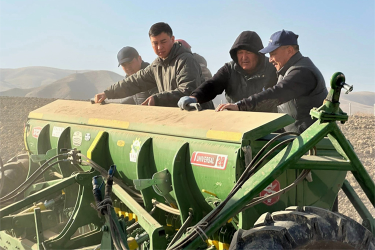 Уточняется, что Женишбек Токторбаев приехал в село Озгур и принял участие в посевной кампании.