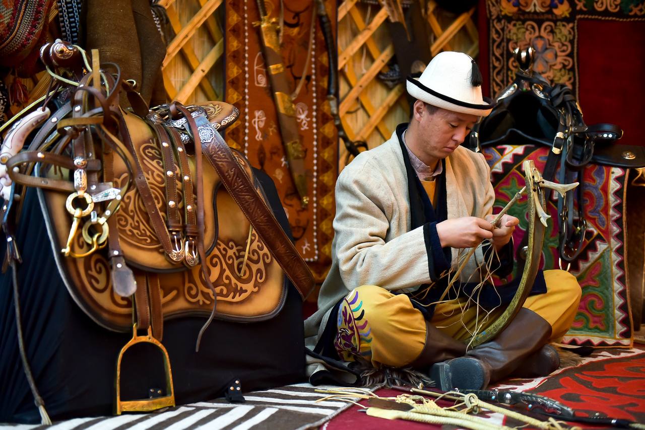 Во время экскурсии Владимира Путина заинтересовала игра молодого комузиста. Лидер России взял в руки инструмент и попытался повторить несколько аккордов, которые ему показал юный музыкант.