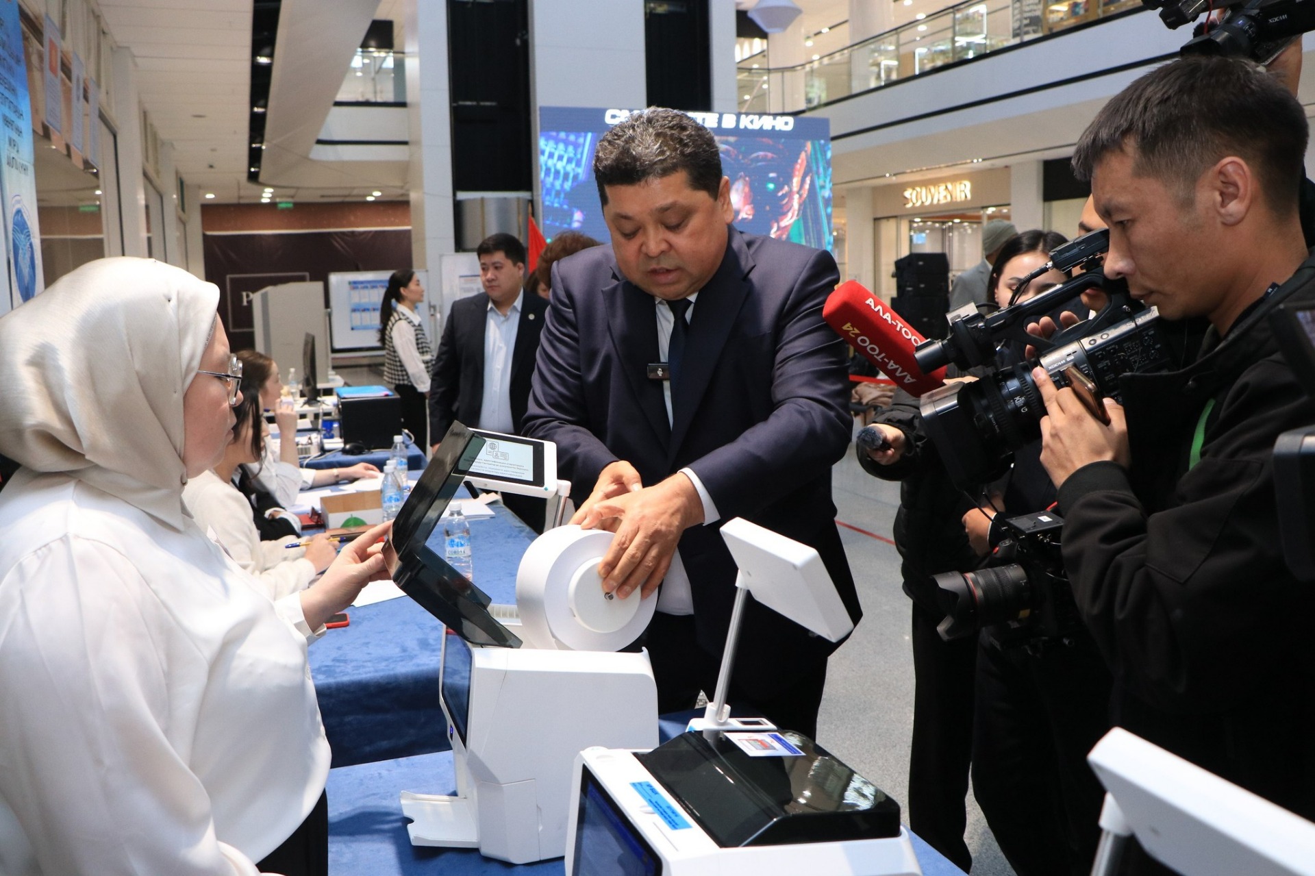 Глава ЦИК прошел идентификацию через приложение «Тундук» и проголосовал. Для председателя был распечатан бюллетень его избирательного округа № 8, и он отдал голос за одного из кандидатов своего округа. В целом процедура заняла менее минуты. Аппарат способен обслужить до 720 избирателей за 12 часов. В случае окончания бумаги для бюллетеня ее замена занимает всего 3–4 секунды.